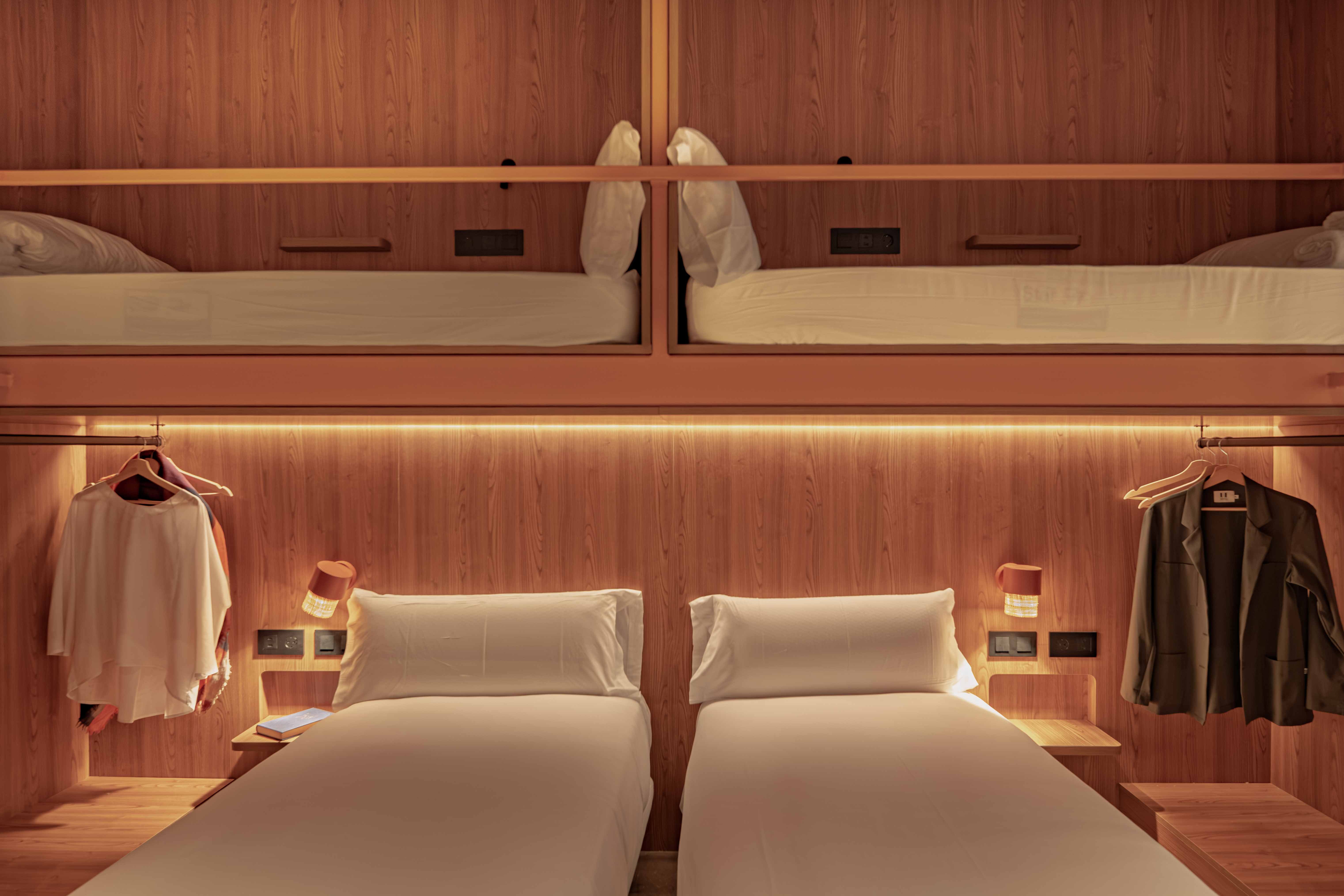 Elegantes habitaciones dobles y espaciosas habitaciones cuádruples, todas con baño privado, iluminación cuidada y una selección de elementos de alta calidad para un confort óptimo.